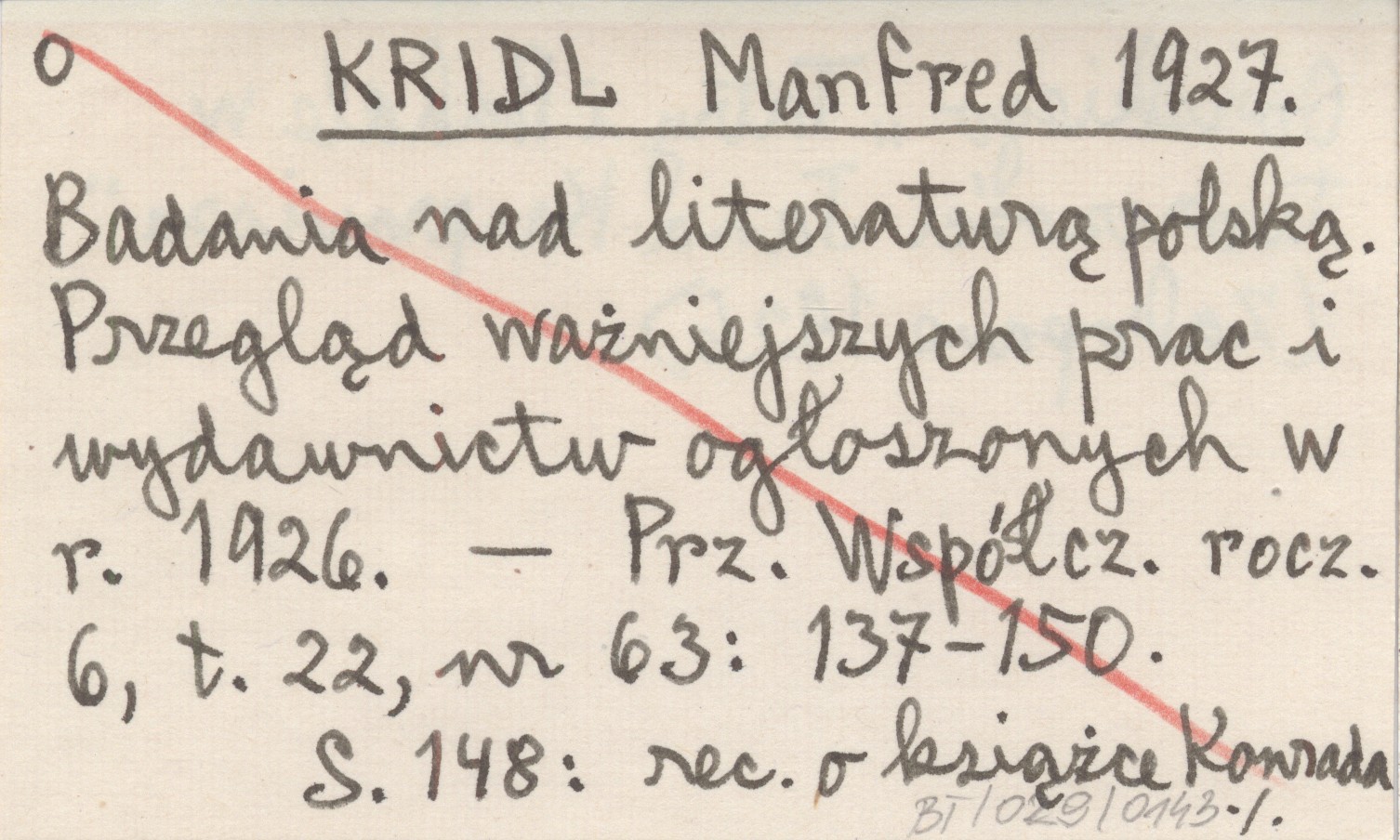 KRIDL Manfred 1927 Badania nad literaturą polską. Przegląd ważniejszych prac i wydawnictw ogłoszonych w r. 1926.