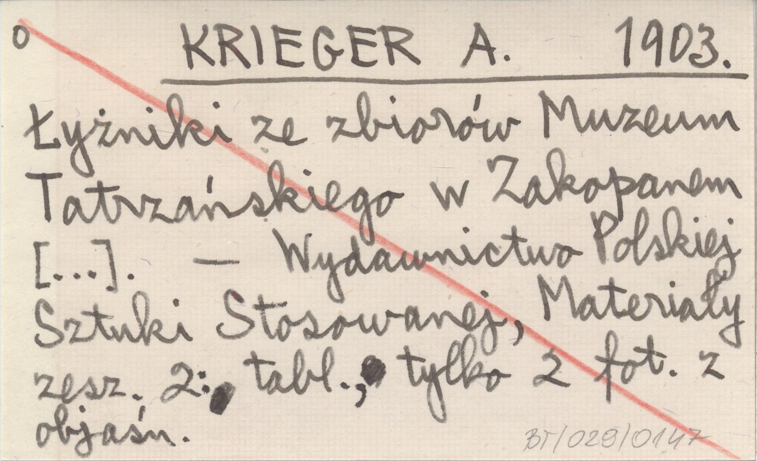 KRIEGER A. 1903 Łyżniki ze zbiorów Muzeum Tatrzańskiego w Zakopanem [...].