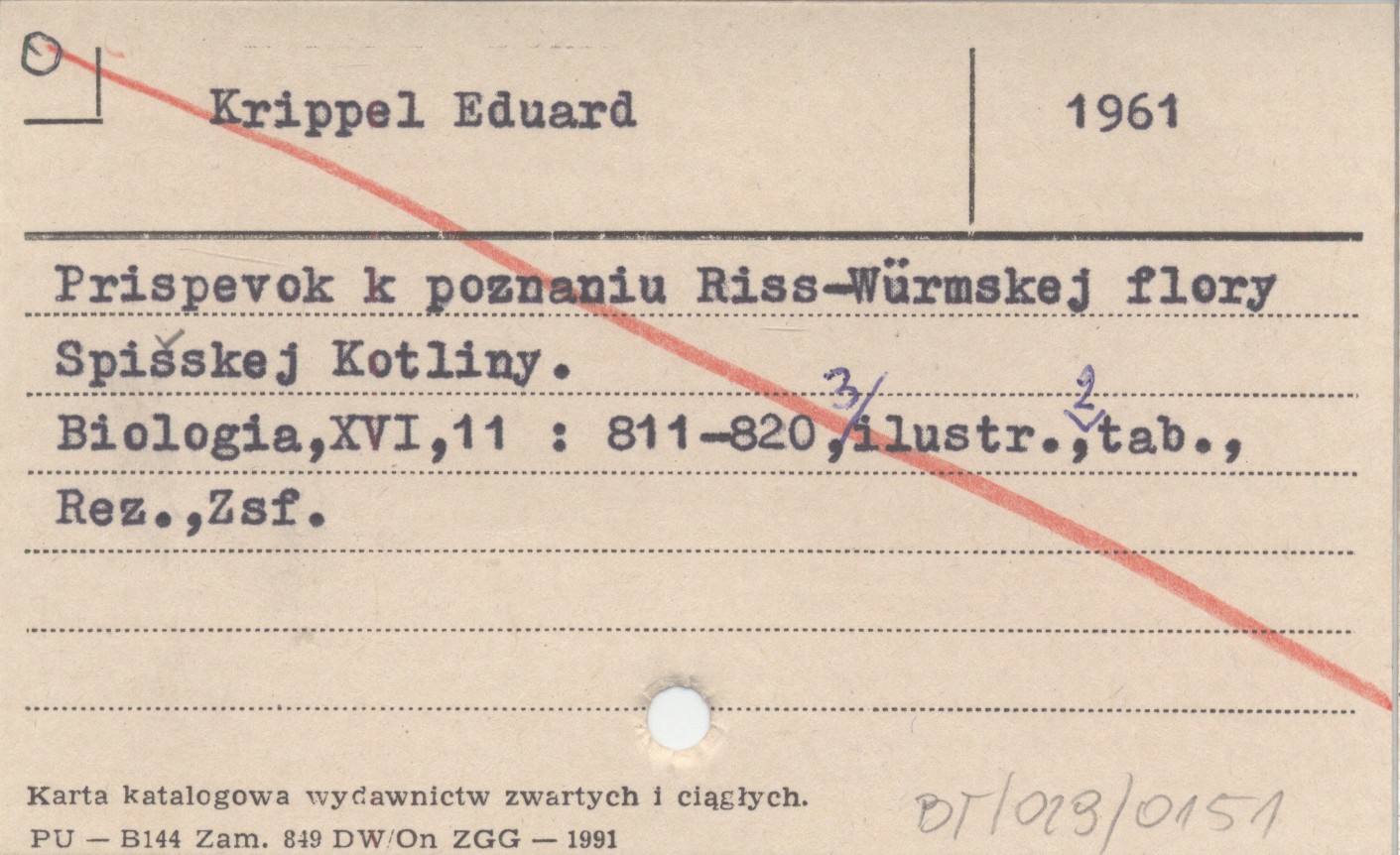 KRIPPEL Eduard 1961 Príspevok k poznaniu Riss-Würmskej flóry Spišskej Kotliny.