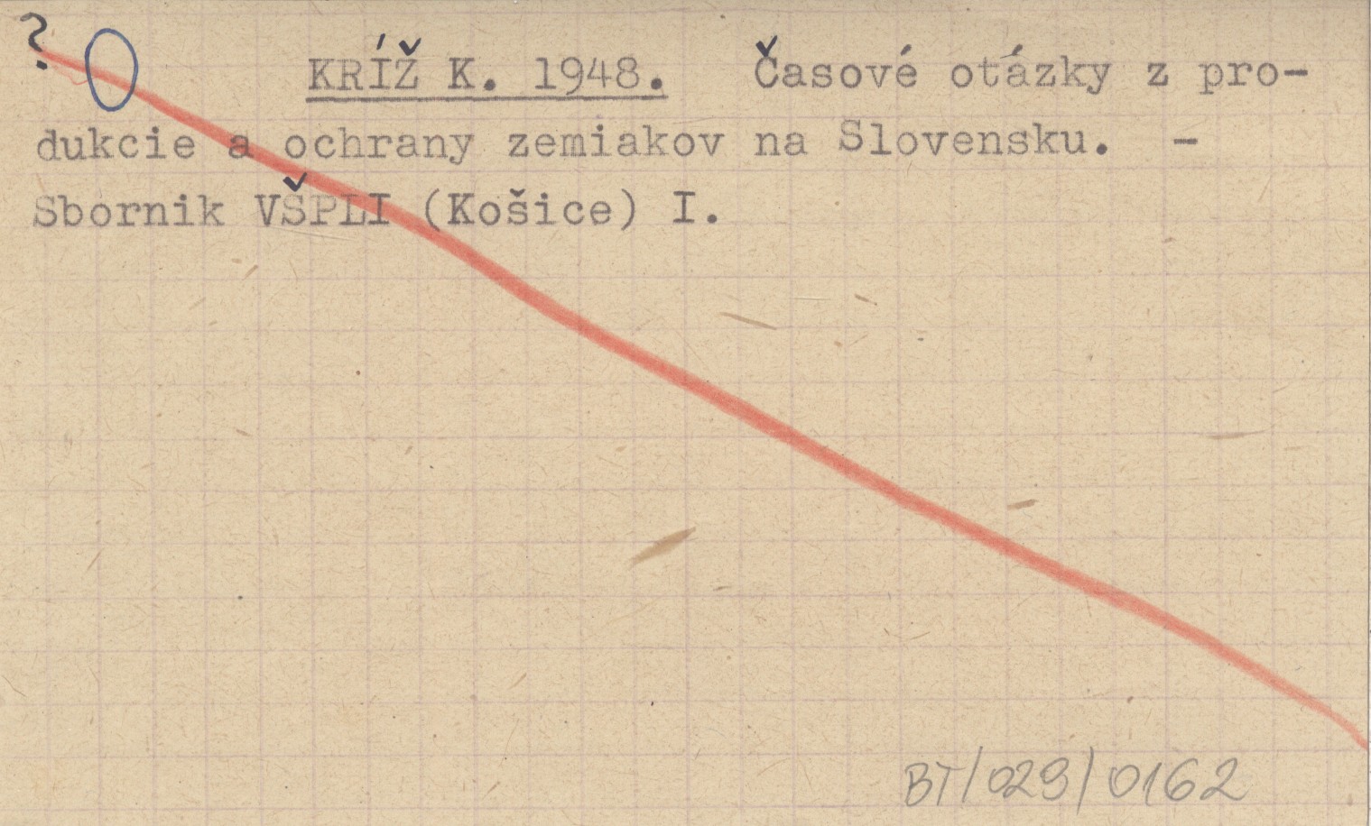 KRÍŽ K. 1948 Časové otázky z produkcie a ochrany zemiakov na Slovensku.