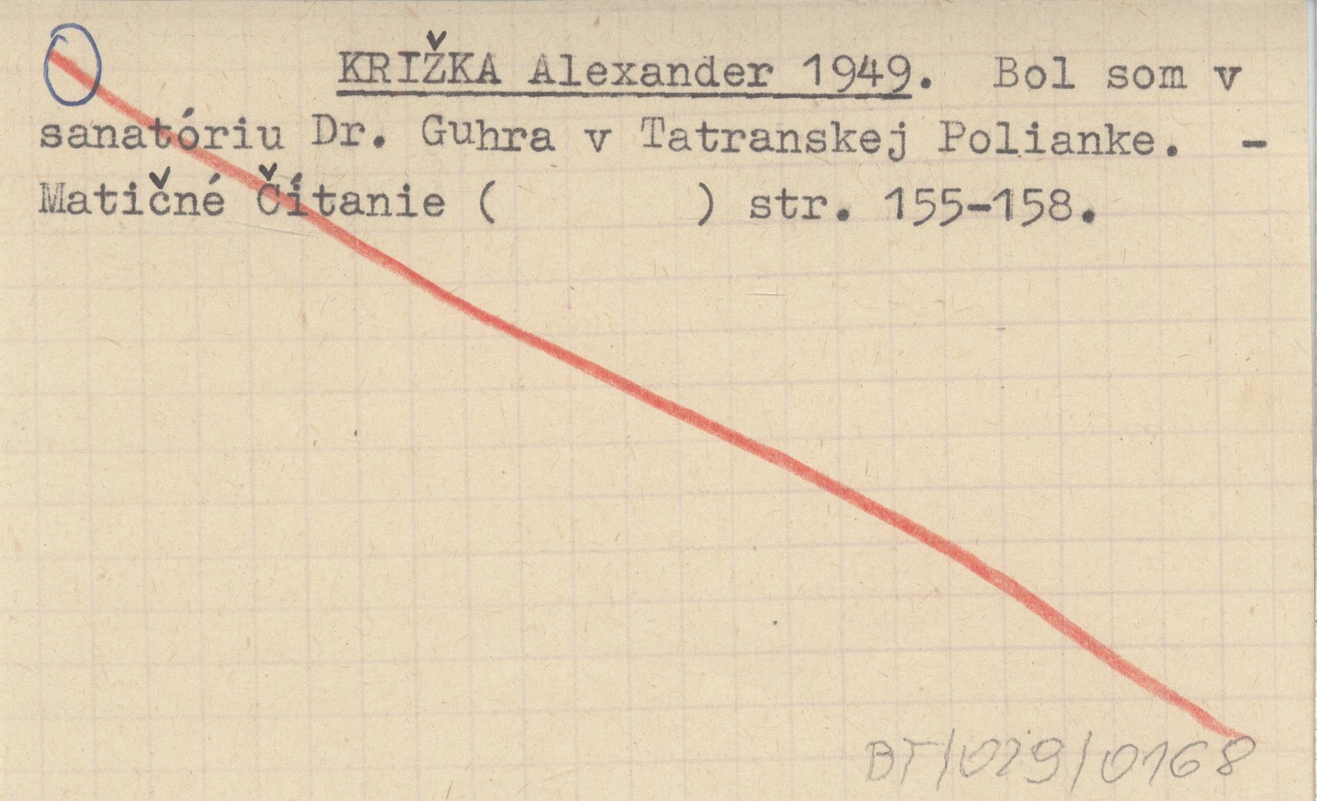 KRIŽKA Alexander 1949 Bol som v sanatórium Dr. Guhra v Tatranskej Polianke.