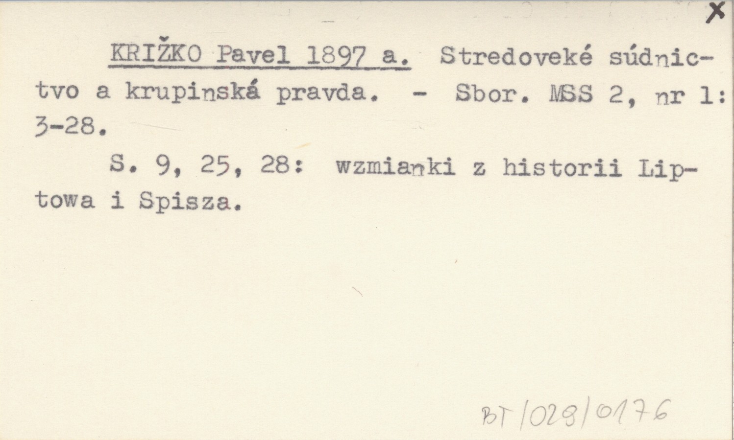 KRIŽKO Pavel 1897 a Stredoveké súdnictvo a krupinská pravda.