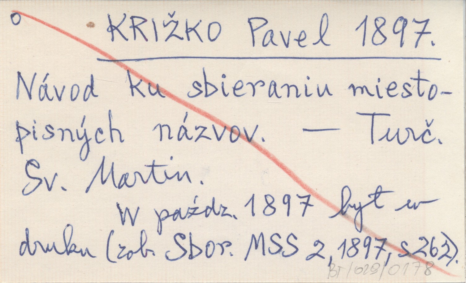 KRIŽKO Pavel 1897 Návod ku sbieraniu miestopisných názvov.