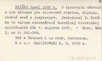 KRI®KO Pavel 1897 b O miestnych názvoch a ich význame pre slovenskú starinu, dejepis, osobné mená a ajzykozpyt. Predniesol P. Kriľko vo valnom shromaľdení Museálnej slovenskej spoločnosti dňa 4. augusta 1897.