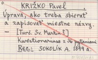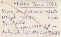 KRI®KO Pavel 1897 Návod ku sbieraniu miestopisných názvov.