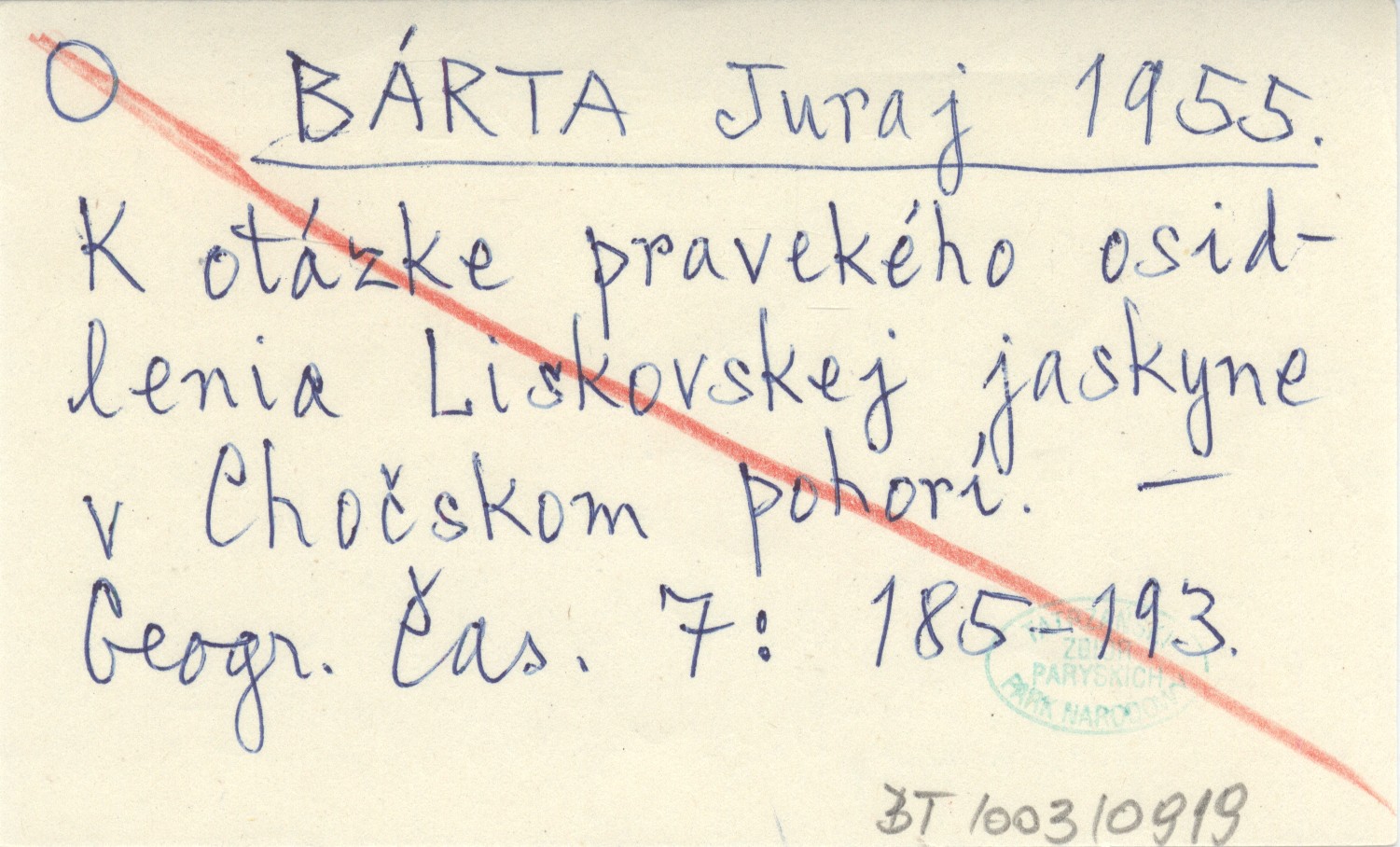 BÁRTA Juraj 1955 K otázke pravekého osidlenia Liskovej jaskyne v Chočskom pohorí.