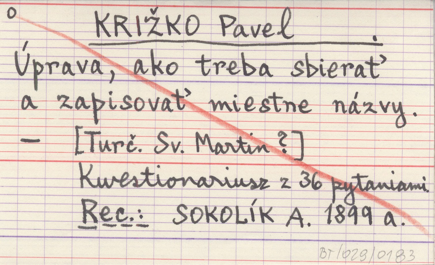 KRIŽKO Pavel Úprava, ako treba sbierať a zapisovať miestne názvy.