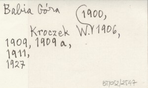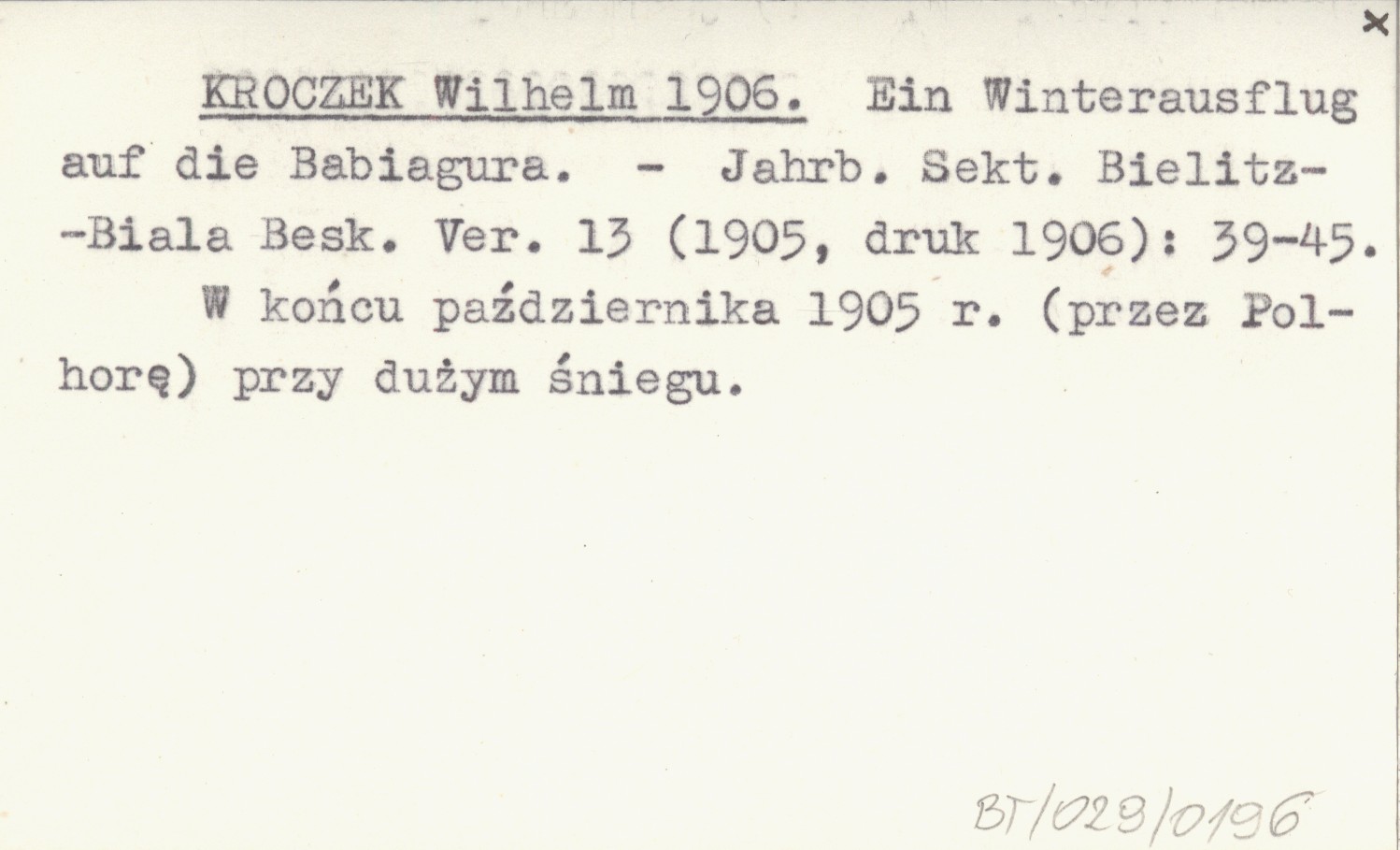 Jahresber. Sekt. Bielitz-Biala Besk. Ver., 13 (1905, druk 1906): 39-45. W końcu października 1905 r. (przez Polhorę) przy dużym śniegu.