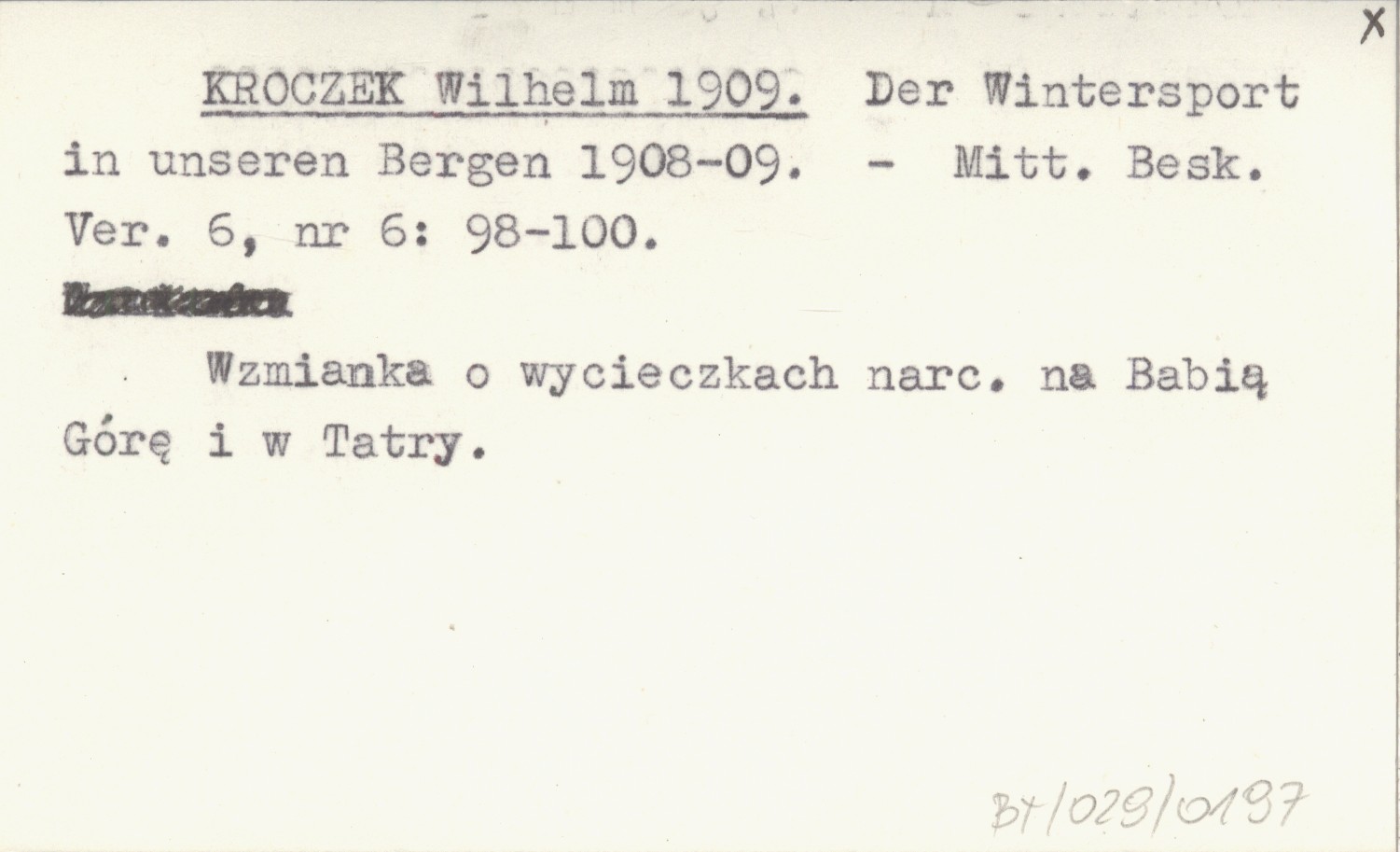 Mitteilungen des Beskidenvereines, 6, nr 6: 98-100. Wzmianka o wycieczkach narciarskich na Babią Górę i w Tatry.