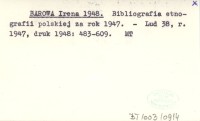 BAROWA Irena 1948 Bibliografia etnografii polskiej za rok 1947.