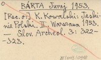 BÁRTA Juraj 1953 K. Kowalski: Jaskinie Polski. II. Warszawa 1953.