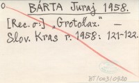 BÁRTA Juraj 1955 K otázke pravekého osidlenia Liskovej jaskyne v Chočskom pohorí.