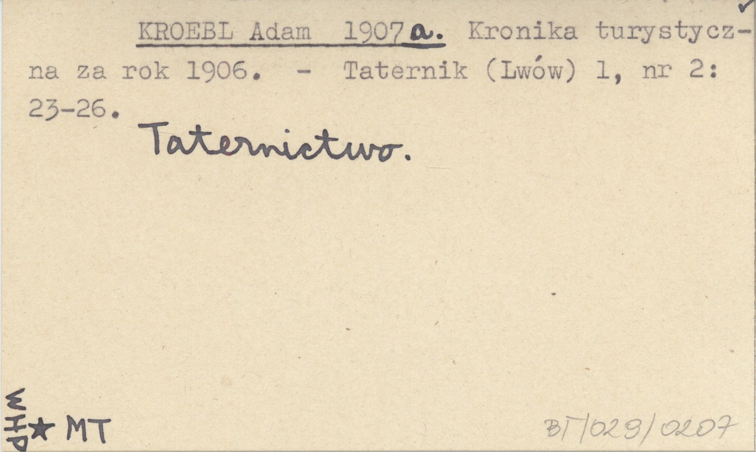 KROEBL Adam 1907 a Kronika turystyczna za rok 1906.