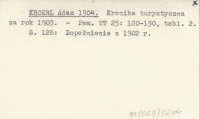 KROEBL Adam 1907 Kronika turystyczna za rok 1905.