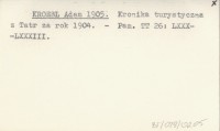 KROEBL Adam 1905 Kronika turystyczna z Tatr za rok 1904.