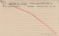 KROFTA K. 1935 Podkarpatská Rus a Československo.
