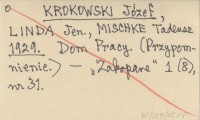 KROKOWSKI Józef LINDA, Jen. ; MISCHKE, Tadeusz. ; 1929 Dom Pracy. (Przypomnienie.)
