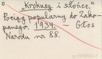 "Krokusy i słońce". Pociąg popularny do Zakopanego. 1934