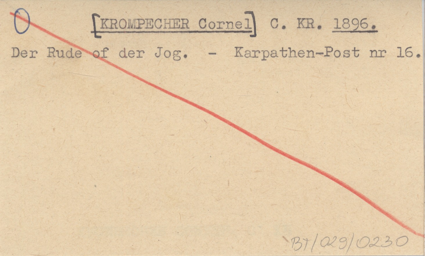 C. KR. [KROMPECHER Cornel] 1896 Der Rude of der Jog.