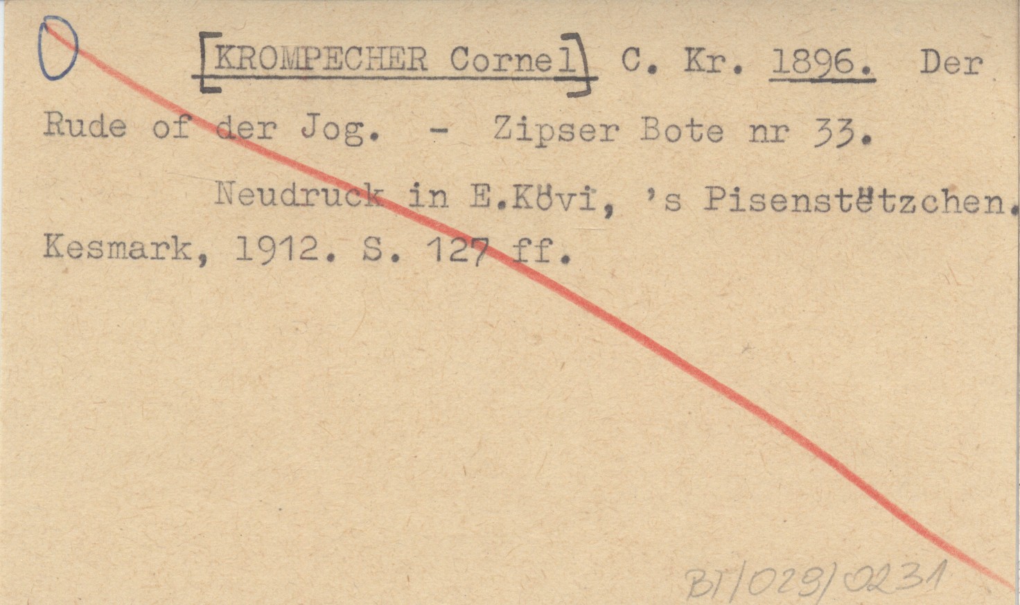 C. Kr. [KROMPECHER Cornel] 1896 Der Rude of der Jog.