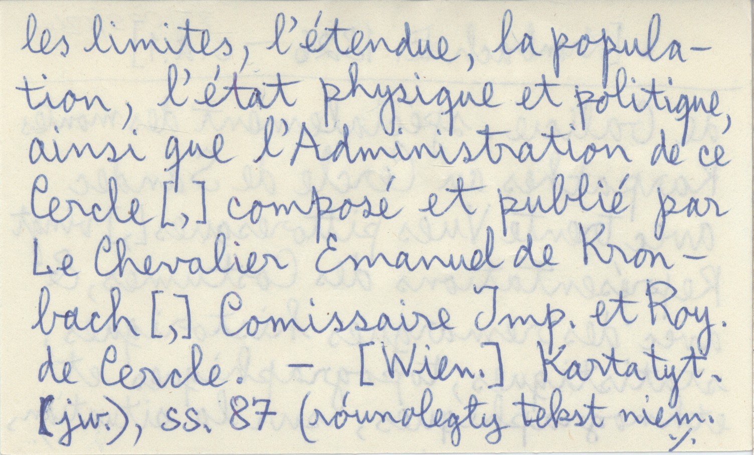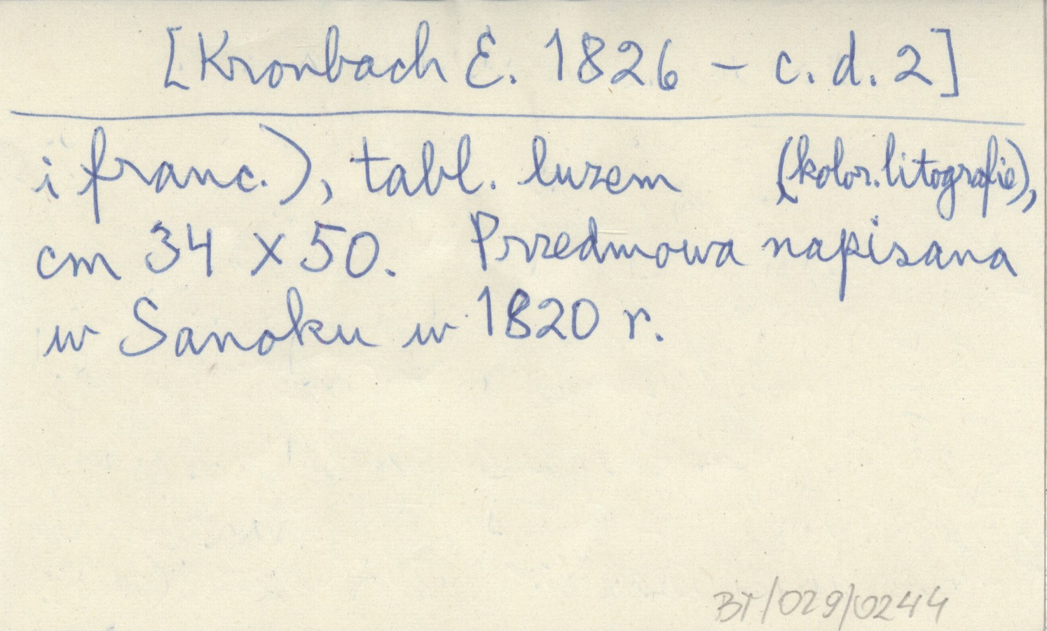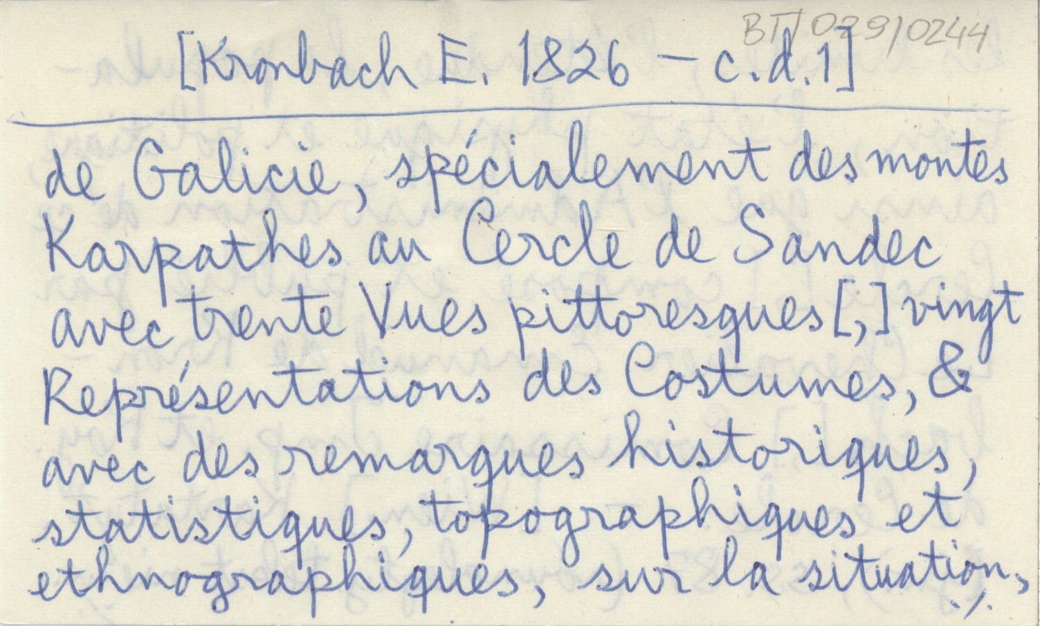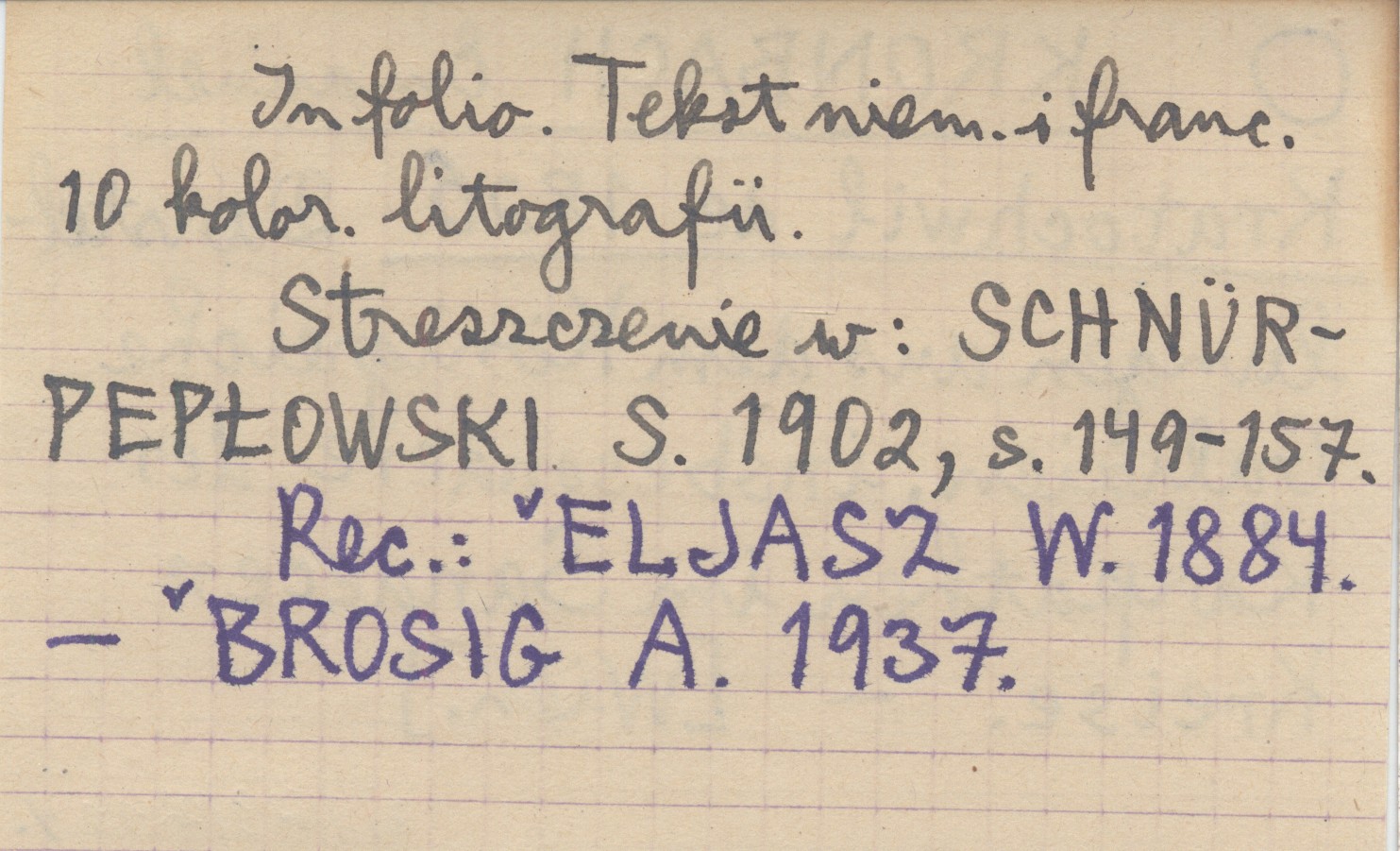 [Wien] , 87 s., 10 k., 34x50 cm. Przedmowa napisana w Sanoku w 1820 r. Tekst niemiecki i francuski. Streszczenie w: SCHNÜR-PEPŁOWSKI S. 1902: 149-157. REC: ELJASZ W. 1884 ; BROSIG A. 1937 ;