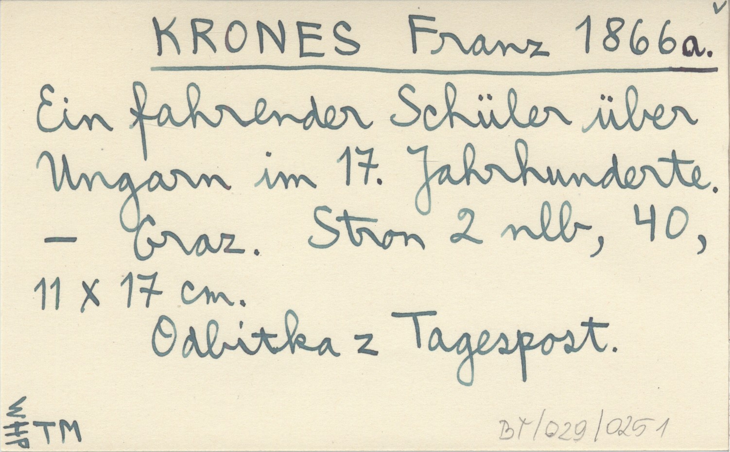 KRONES Franz 1866 a Ein fahrender Schüler über Ungarn im 17. Jahrhunderte.