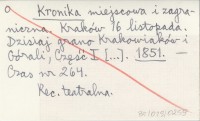 Kronika miejscowa i zagraniczna. Kraków 16 listopada. Dzisiaj grano Krakowiaków i Górali, Część I [...]. 1851
