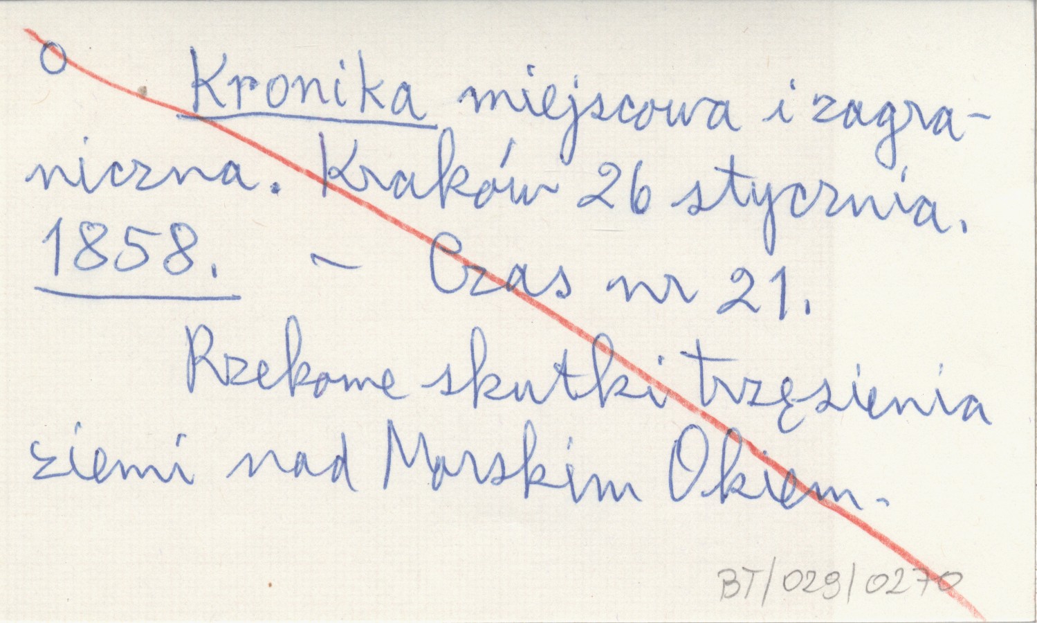 Czas, Nr 21. Rzekome skutki trzęsienia ziemi nad Morskim Okiem.