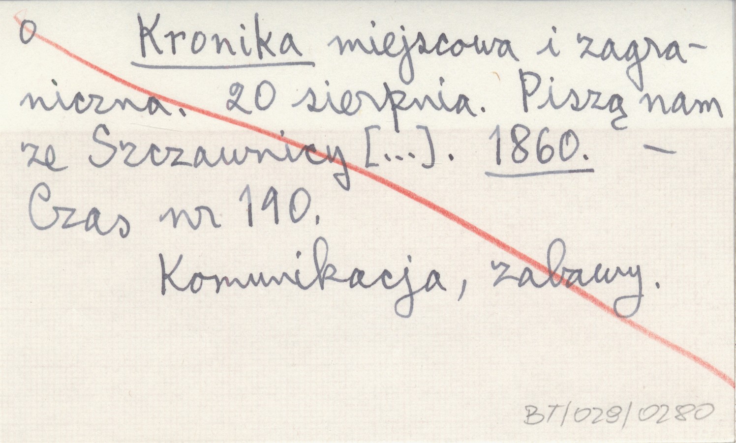 Kronika miejscowa i zagraniczna. 20 sierpnia. Piszą nam ze Szczawnicy [...]. 1860