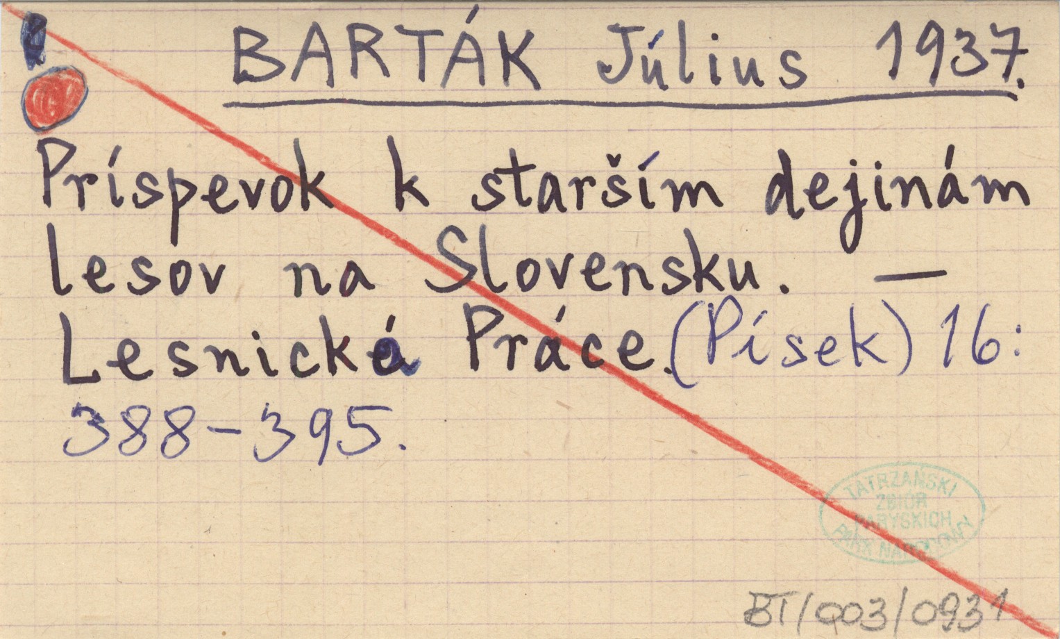BARTÁK Július 1937 Príspevok k starším dejinám lesov na Slovensku.