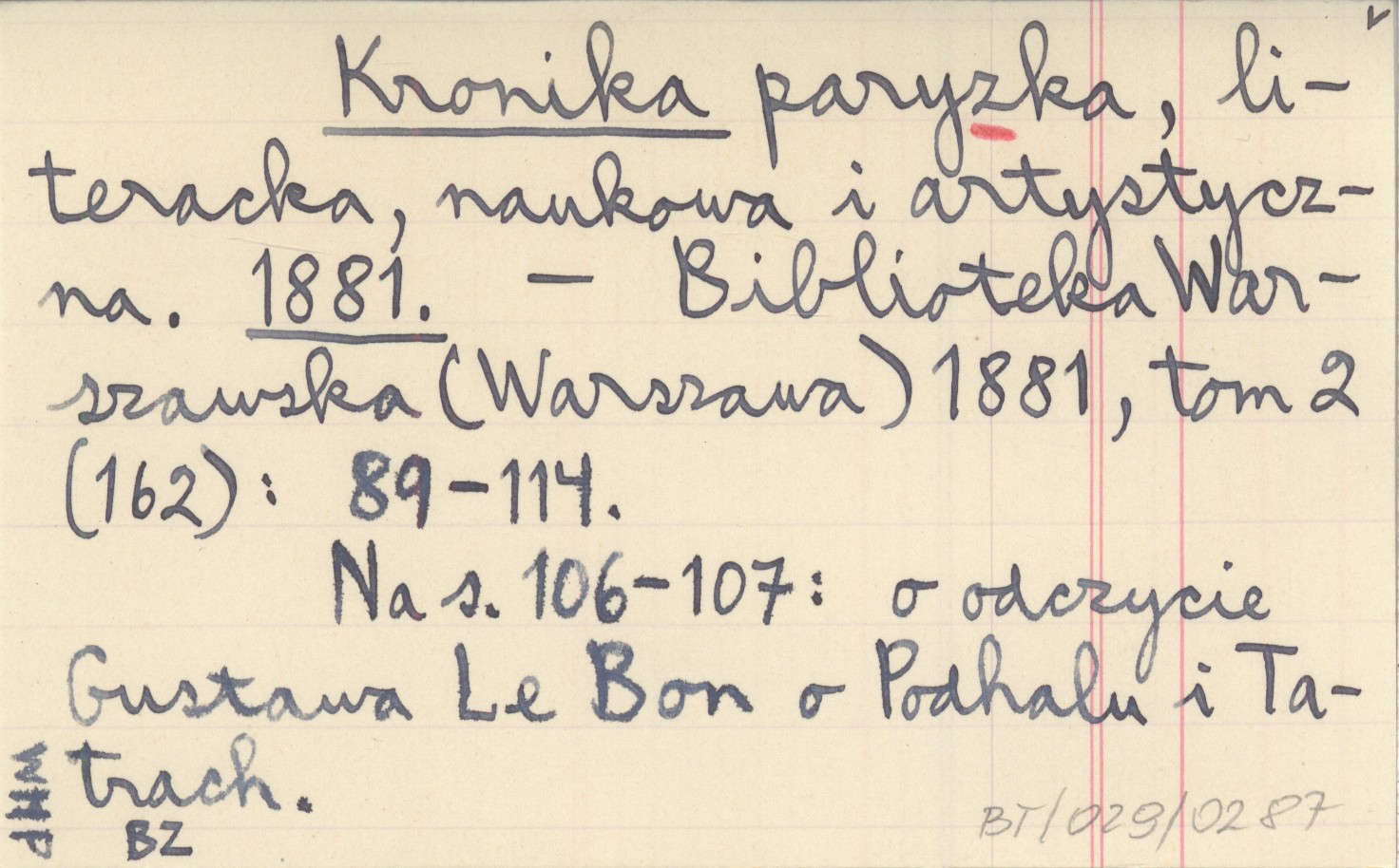 Biblioteka Warszawska (Warszawa) , T. 2 (162): 89-114. Na s. 106-107: o odczycie Gustawa Le Bon o Podhalu i Tatrach.