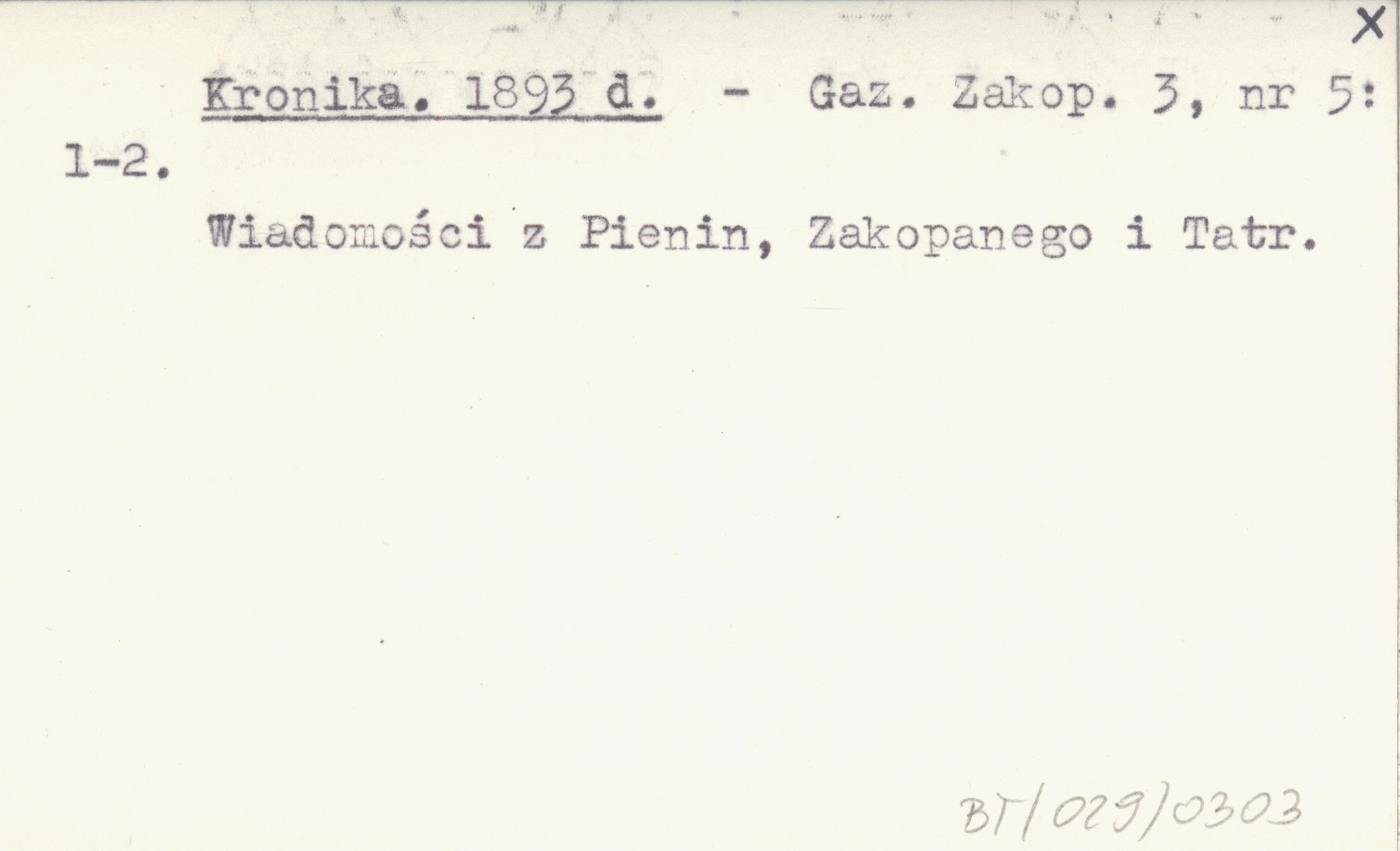 Gazeta Zakopiańska, 3, nr 5: 1-2. Wiadomości z Pienin, Zakopanego i Tatr.