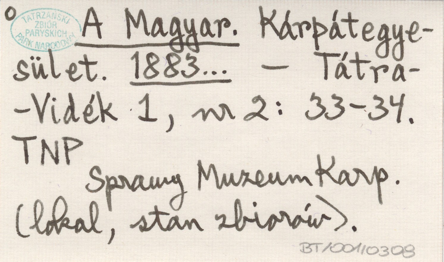 Tátra-Vidék, 1, nr 2: 33-34. Sprawy Muzeum Karpackiego (lokal, stan zbiorów).
