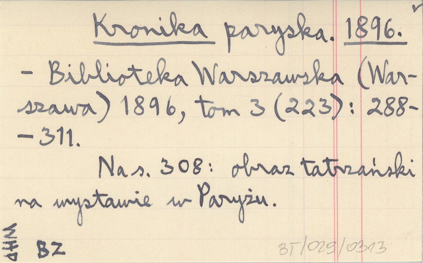 Biblioteka Warszawska (Warszawa) , T. 3 (223): 288-311. Na s. 308: obraz tatrzański na wystawie w Paryżu.