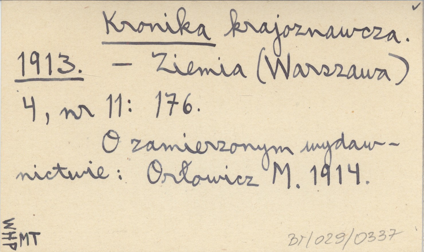 Ziemia (Warszawa) , 4, nr 11: 176. O zamierzonym wydawnictwie: Orłowicz M. 1914.