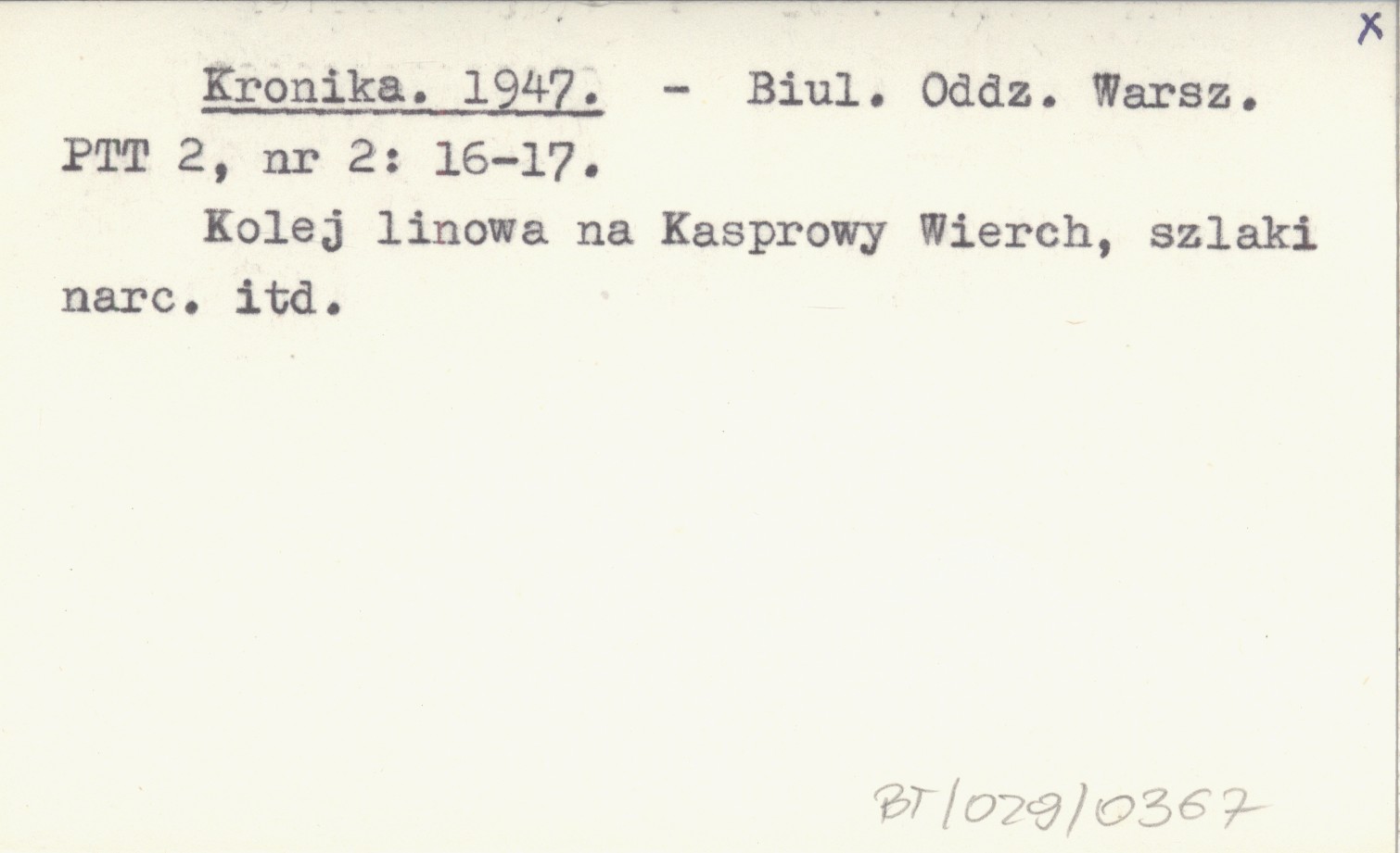 Biuletyn Oddziału Warszawskiego Polskiego Towarzystwa Tatrzańskiego, 2, nr 2: 16-17. Kolej linowa na Kasprowy Wierch, szlaki narciarskie itd.