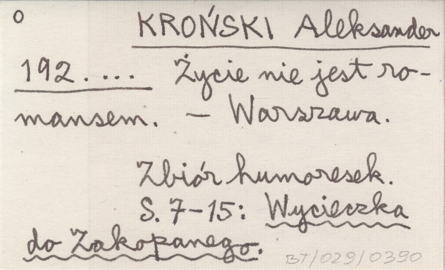 KROŃSKI Aleksander 192.... Życie nie jest romansem.
