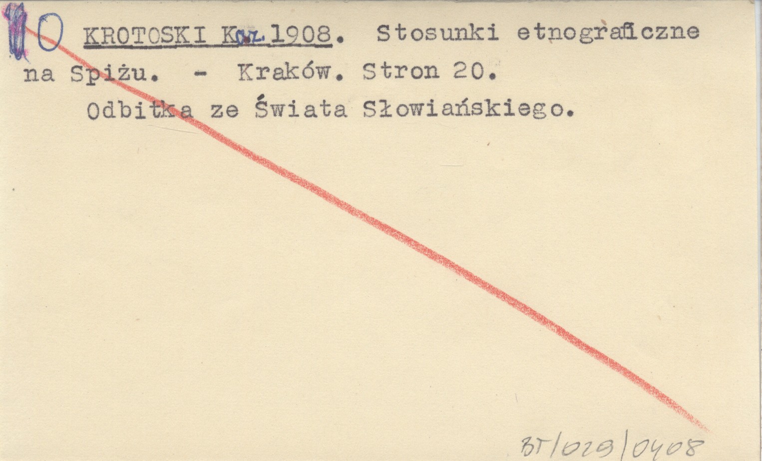 KROTOSKI Kazimierz 1908 Stosunki etnograficzne na Spiżu.