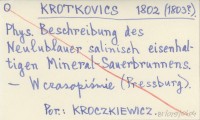 KROTKOVICS 1802 (1803?) Phys. Beschreibung des Neulublauer salinisch eisenhaltigen Mineral-Sauerbrunnens.