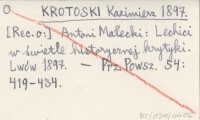 KROTOSKI Kazimierz 1897 [Rec. o:] Antoni Małecki: Lechici w świetle historycznej krytyki. Lwów 1897.
