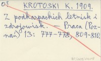 KROTOSKI K. 1909 Z podkarpackich letnisk i zdrojowisk.