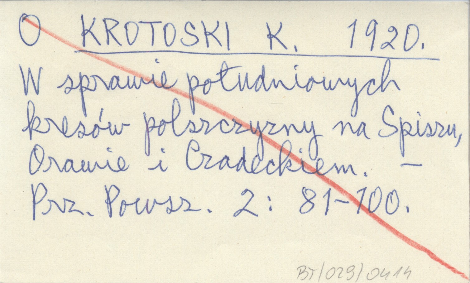 KROTOSKI K. 1920 W sprawie południowych kresów polszczyzny na Spiszu, Orawie i Czadeckiem.