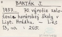 BARTÁK J. 1957... 70. výročie zaloľenia horárskej ąkoly v Lipt. Hrádku.