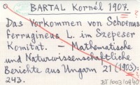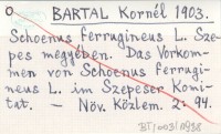BARTAL Kornél 1903 Schoenus ferrugineus L. Szepes megyében. Das Vorkommen von Schoenus ferrugineus L. im Szepeser Komitat.