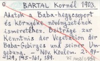BARTAL Kornél 1903 Adatok a Baba-hegycsoport és környéke növényzetének ismeretéhez. Beiträge zur Kenntnis der Vegetation der Baba-Gebirges und seiner Umgebung.