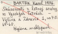 BARTEK Karol 1956 skúsenosti z letnej sezóny vo Vysokých Tatrách.