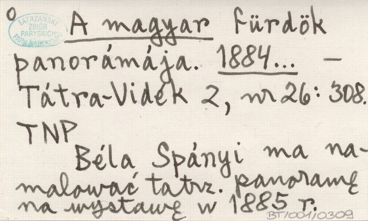 Tátra-Vidék, 2, nr 26: 308. Béla Spányi ma namalować tatrz. panoramę na wystawę w 1885 r.