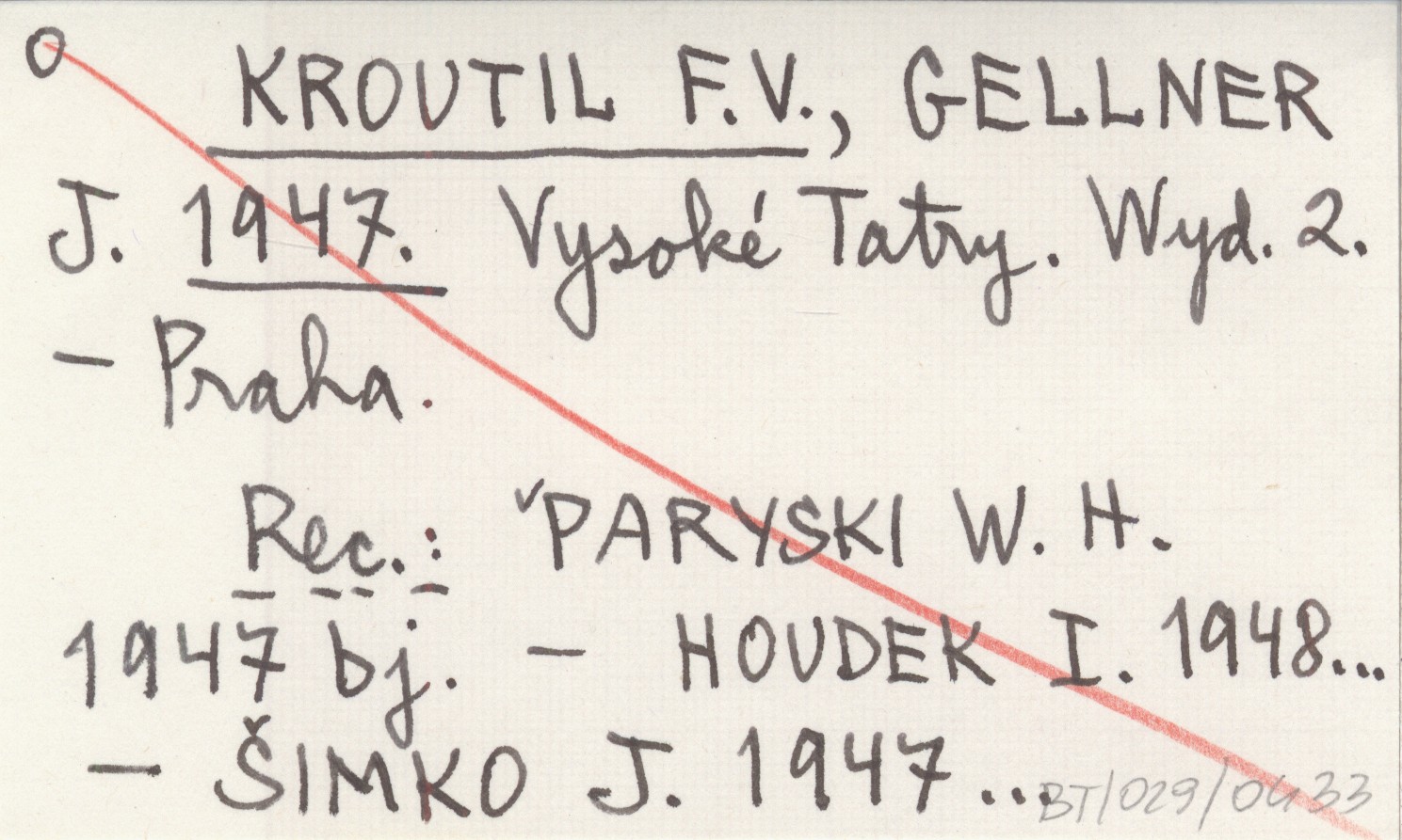 WYD: 2 Praha , REC: PARYSKI W. H. 1947 bj ; HOUDEK I. 1948... ; ŠIMKO J. 1947... ;