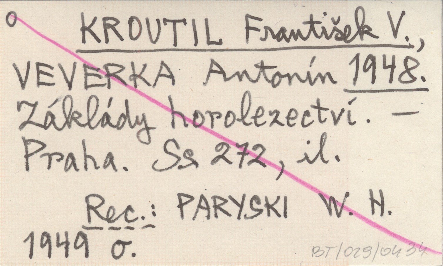 KROUTIL František V. VEVERKA, Antonín. ; 1948 Záklády horolezectví.