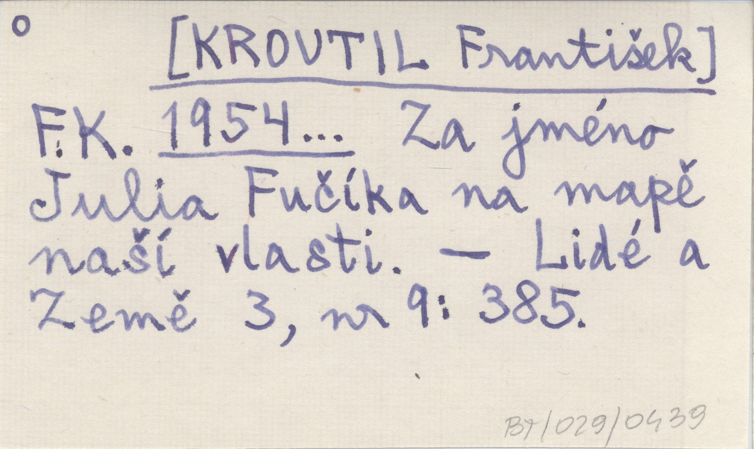 F. K. [KROUTIL František] 1954... Za jméno Julia Fučíka na mapě naší vlasti.
